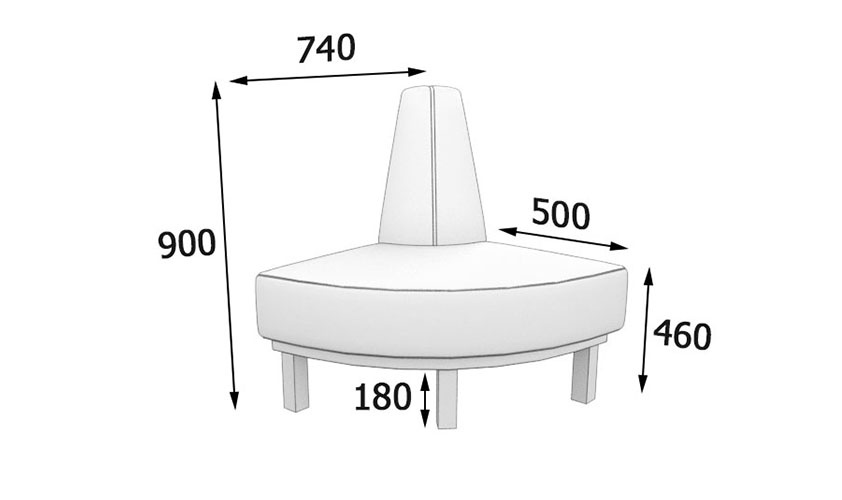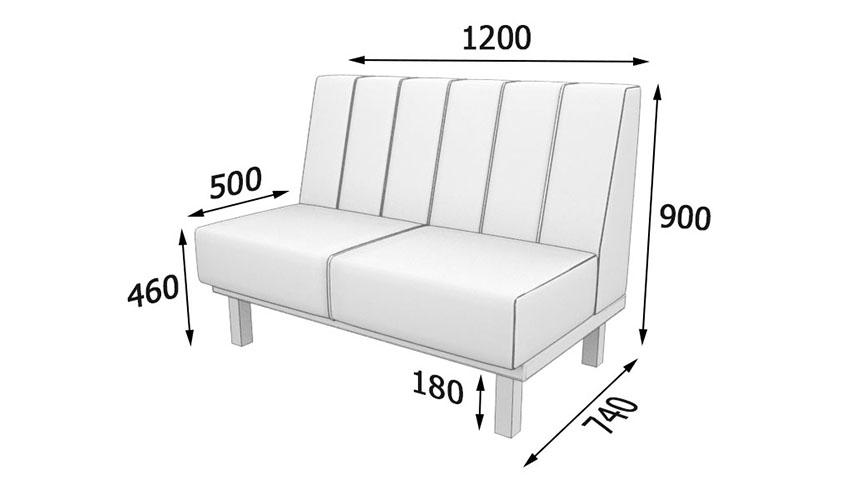 - сиденье съемные подушки, двухсторонней мягкости, основание твердое, настил – подушки из эластичный пенополиуретан толщиной 120 мм сформированный из пенополиуретана 40 мм и пенополиуретана 80 мм плотность 25 кг/м3.